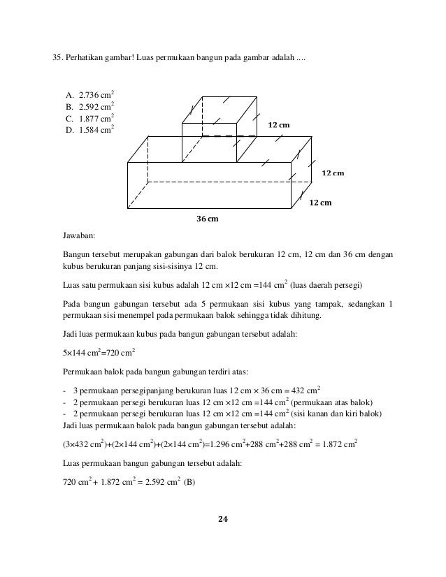 I am so proud to present you today this article that made my day so happy and pada soal kali ini kami membagikan soal luas bangun ruang bola untuk kelas 6 sd yang disertai dengan pembahasannya. Bentuk bangun ketiga merupakan volume gabungan dari bangun ruang berbentuk balok dan limas. Sementara untuk bangun ruang sisi lengkung terdiri atas kerucut, tabung. Oleh pakdosen diposting pada 14 desember 2020. V=s x s x s =8 x 8 x 8 =512 cm³. Pembahasan soal un kelas ix materi bangun ruang 2 bale. Bangun ruang gabungan pada dasarnya berasal dari seperti yang telah kita ketahui bahwa setiap jenis bangun ruang memiliki rumusnya masing masing, baik rumus volume ataupun rumus luas permukaan. Soal soal volume bangun ruang sisi lengkung. Hal ini karena materi mengenai bangun ruang sudah diajarkan sejak kita duduk di bangku sekolah dasar atau sd. Bagaimana cara menyelesaikan contoh soal volume bangun ruang gabungan itu? Berikut ini adalah soal latihan bangun ruang kelas 6 sd, berikut jawaban dan pembahasannya untuk dapat dipelajari agar lebih mudah dipahami 1. Volume sebuah limas segi empat adalah 2.304 m3 dengan tingginya adalah 12 m. Luas alas limas tersebut adalah.