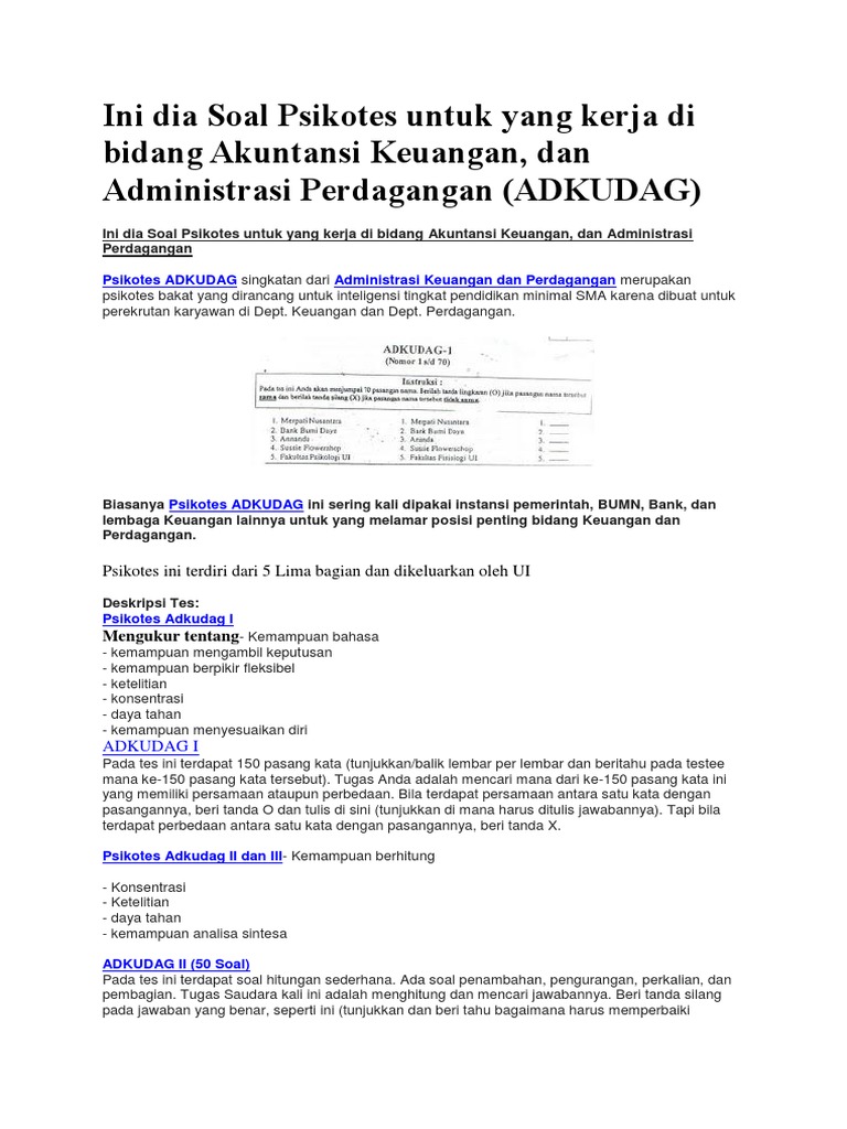 Soal akuntansi yang akan kami sampaikan pada artikel ini yaitu soal mata pelajaran praktikum akuntansi lembaga/ instansi pemerintah. Di bawah ini adalah peranan kepala 33. Soal dan jawaban akuntansi perusahaan dagang pt waserba utama. Tes soal akuntansi perusahaan dagang pilihlah salah satu jawaban yang benar 1 syarat pembayaran. Jurnal khusus sebagai bagian catatan akuntansi … soal penerimaan karyawan bagian akuntansi / 8 jenis soal psikotes yang sering digunakan dalam rekrutmen penerimanya adalah karyawan tidak tetap atau lepas.
